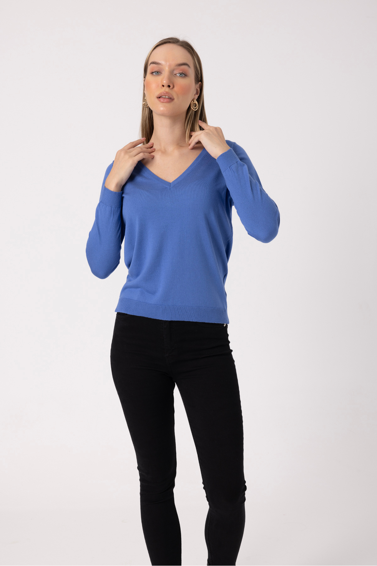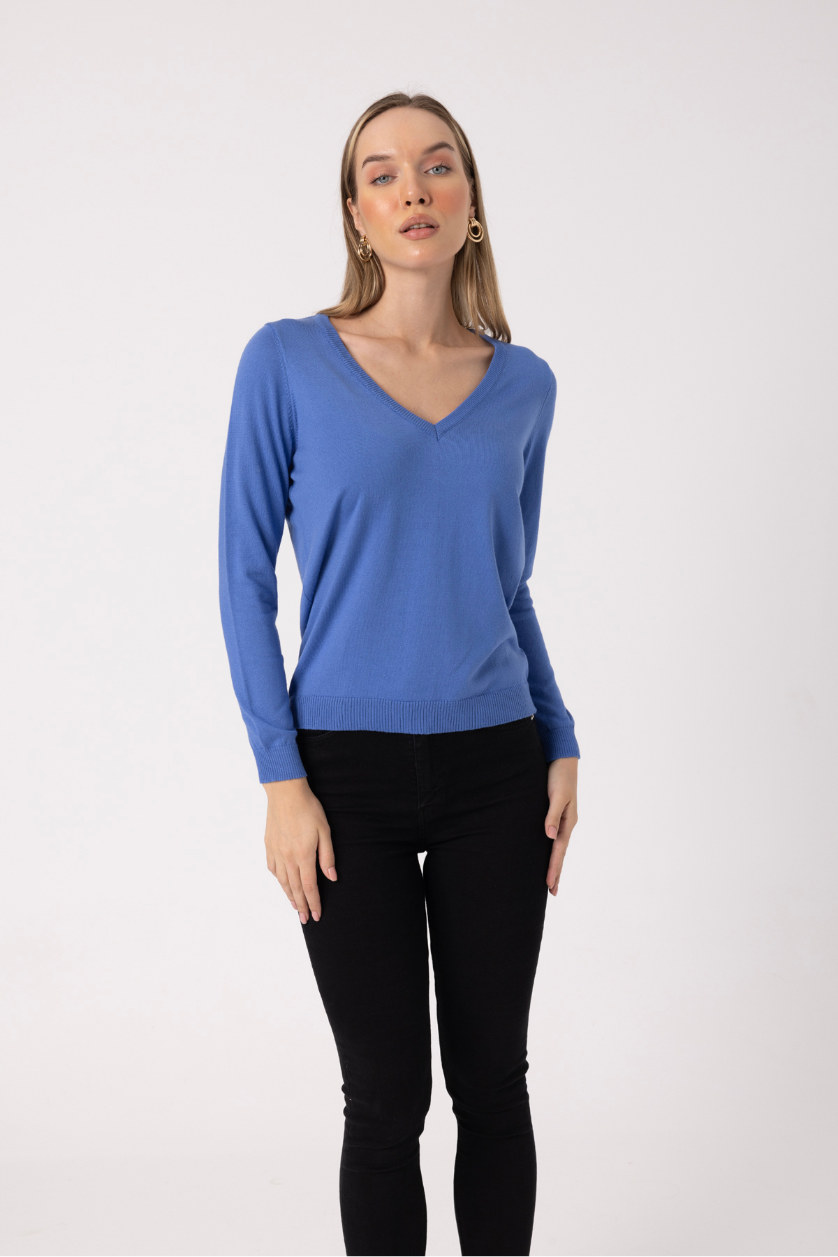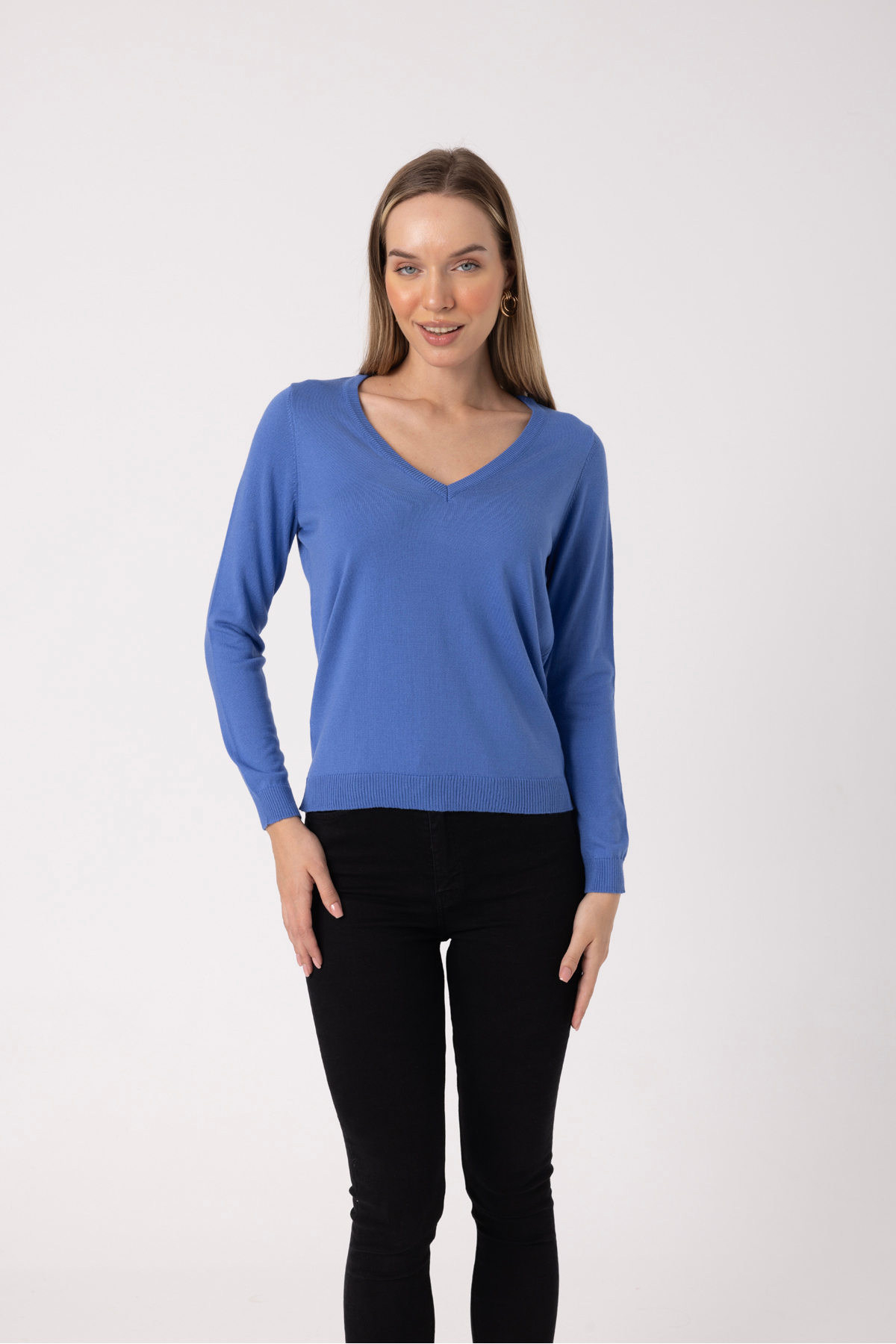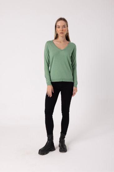 • V-Neck Soft Textured Mercerized Long Sleeve Women’s Sweater