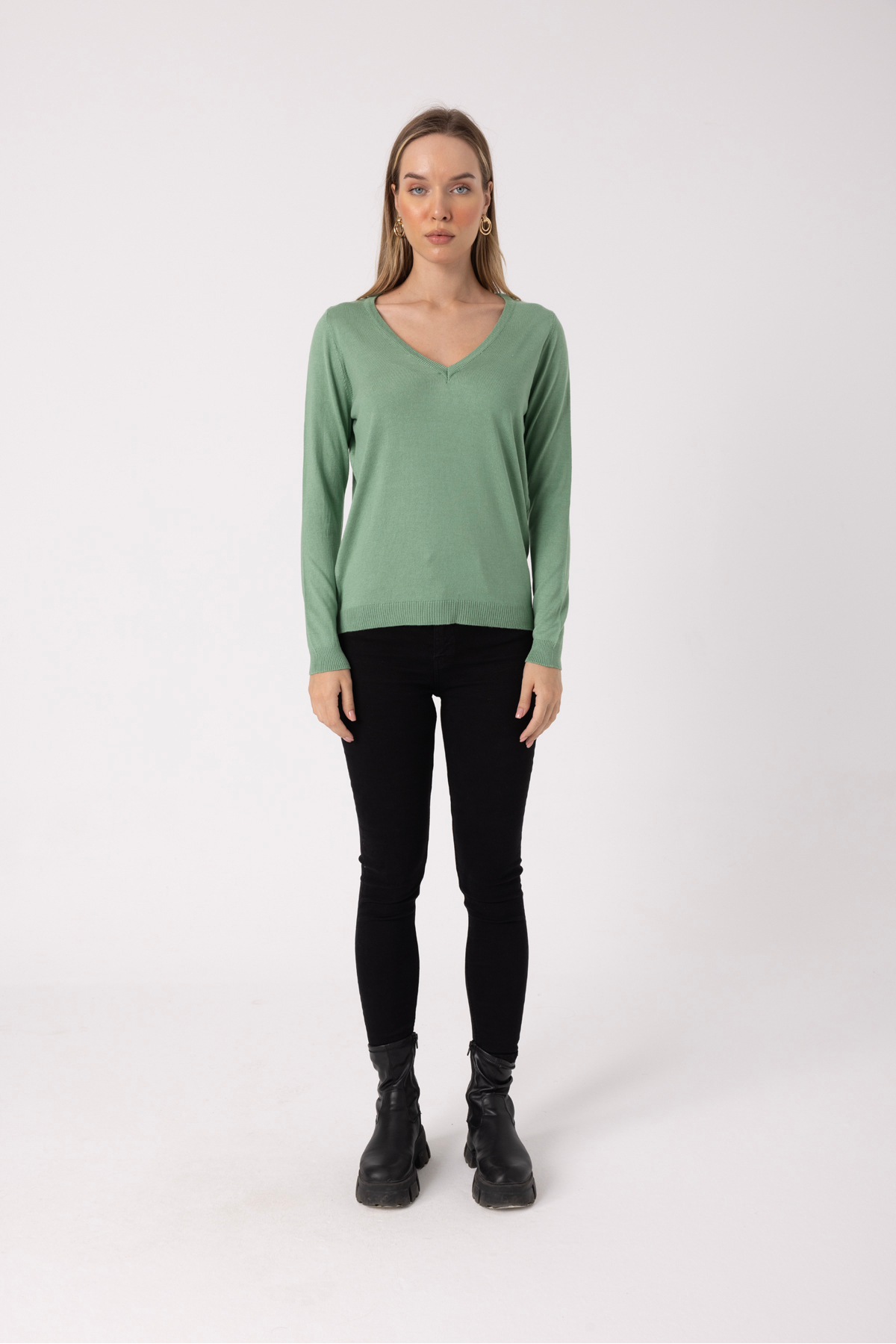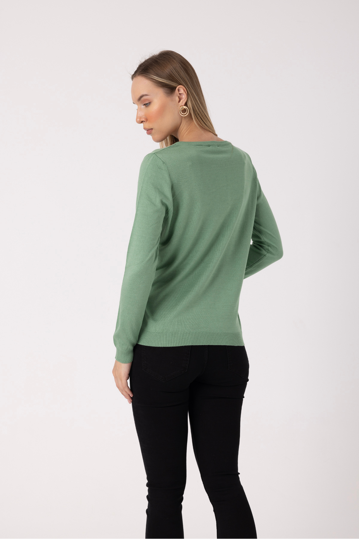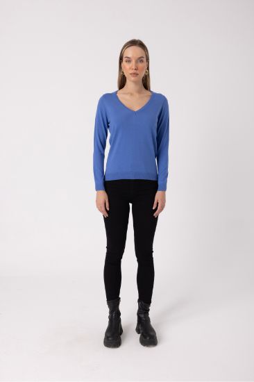 • V-Neck Soft Textured Mercerized Long Sleeve Women’s Sweater