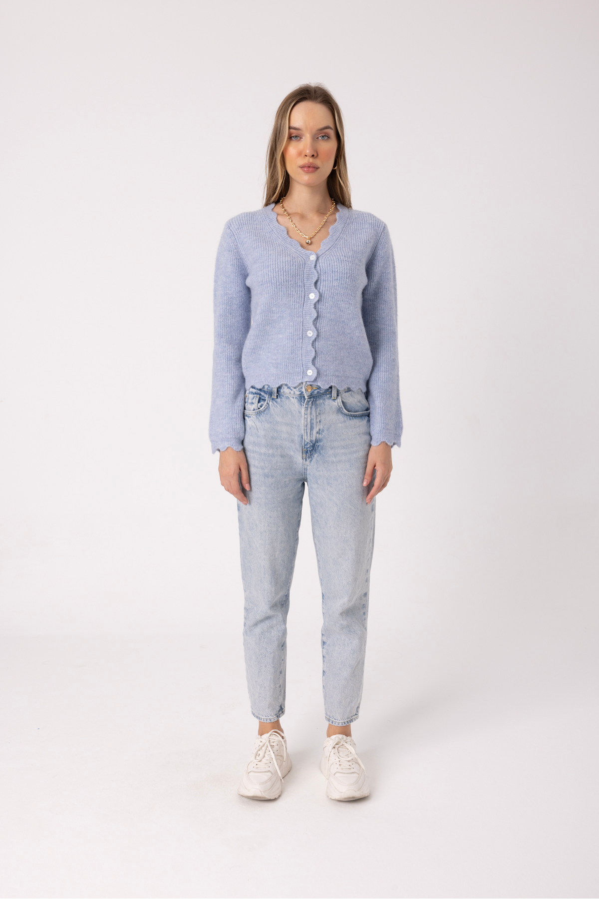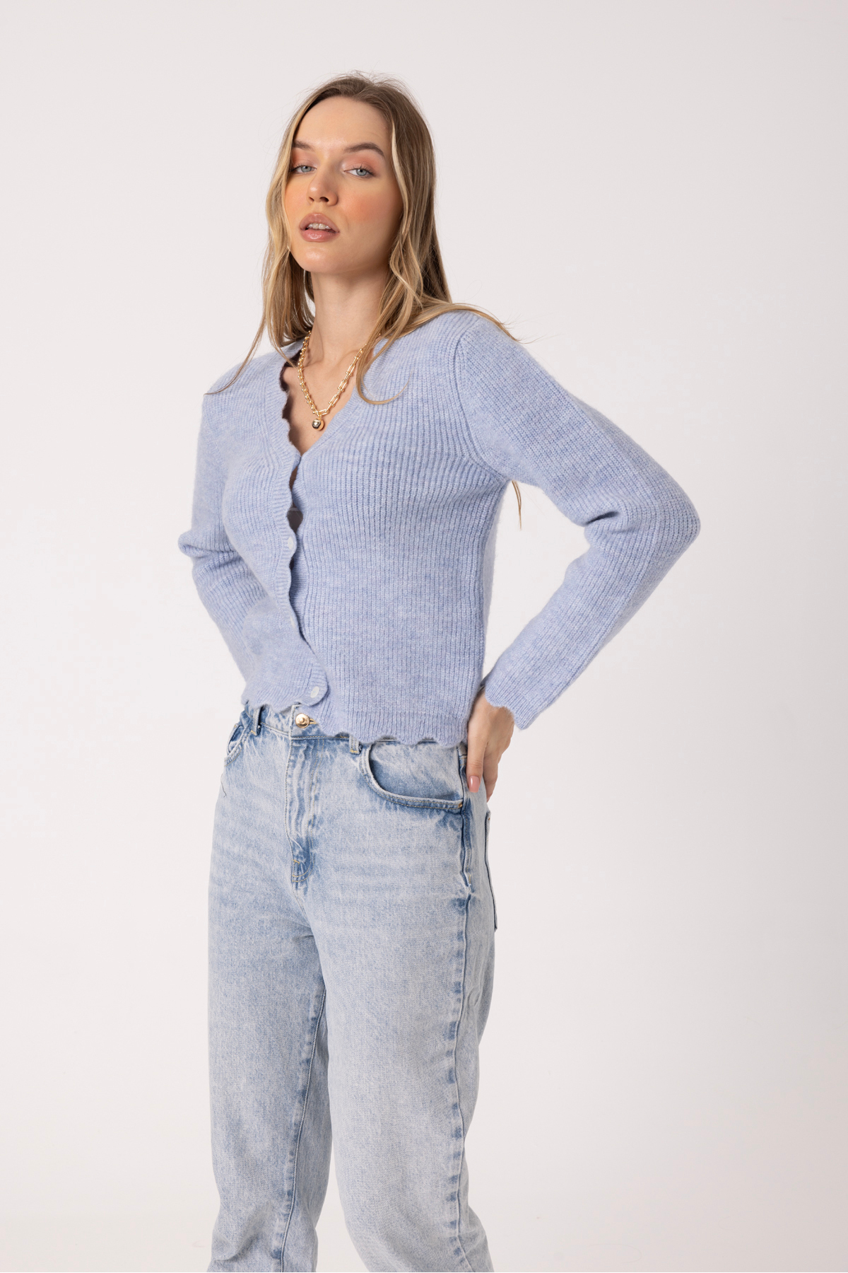 • Button Detail V-Neck Designer Women’s Cardigan
