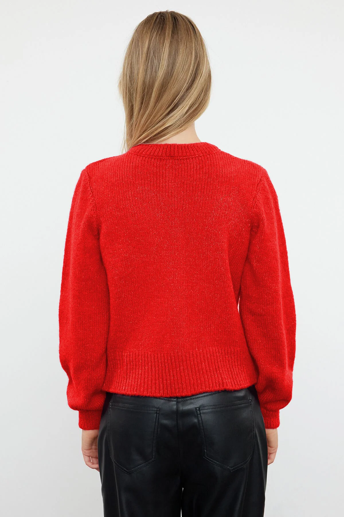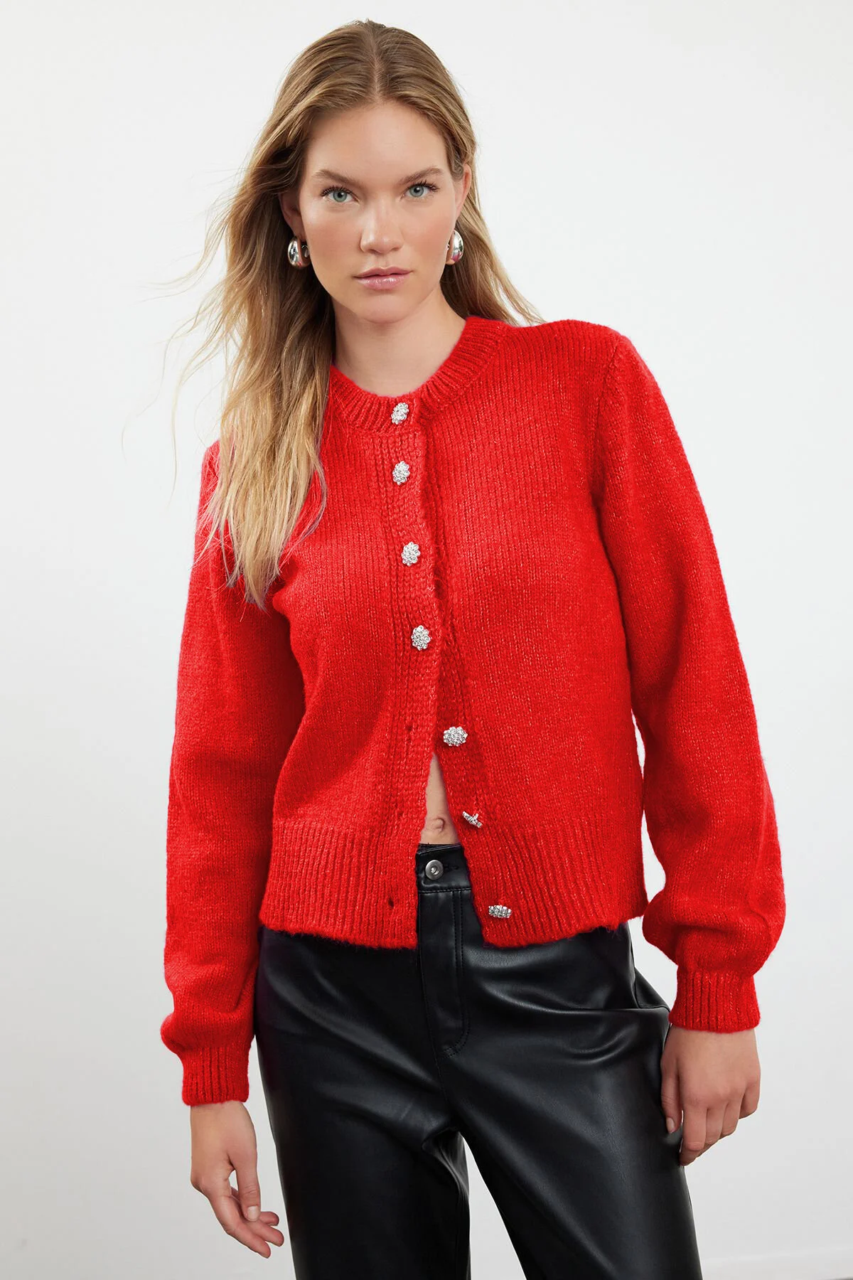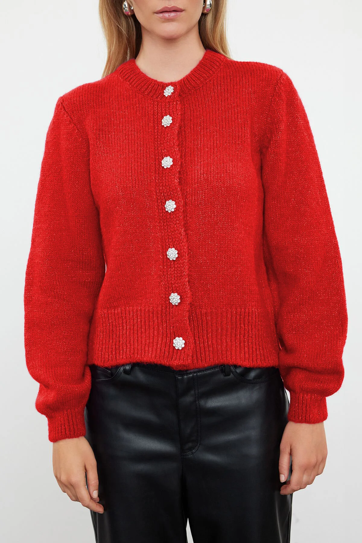 • Nar Çiçeği Yumuşak Dokulu Mücevher Düğmeli Ceket Görünümlü Triko Hırka