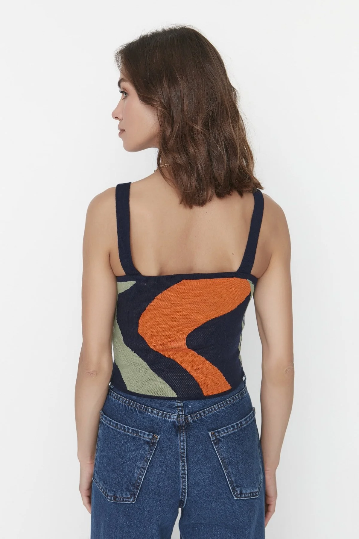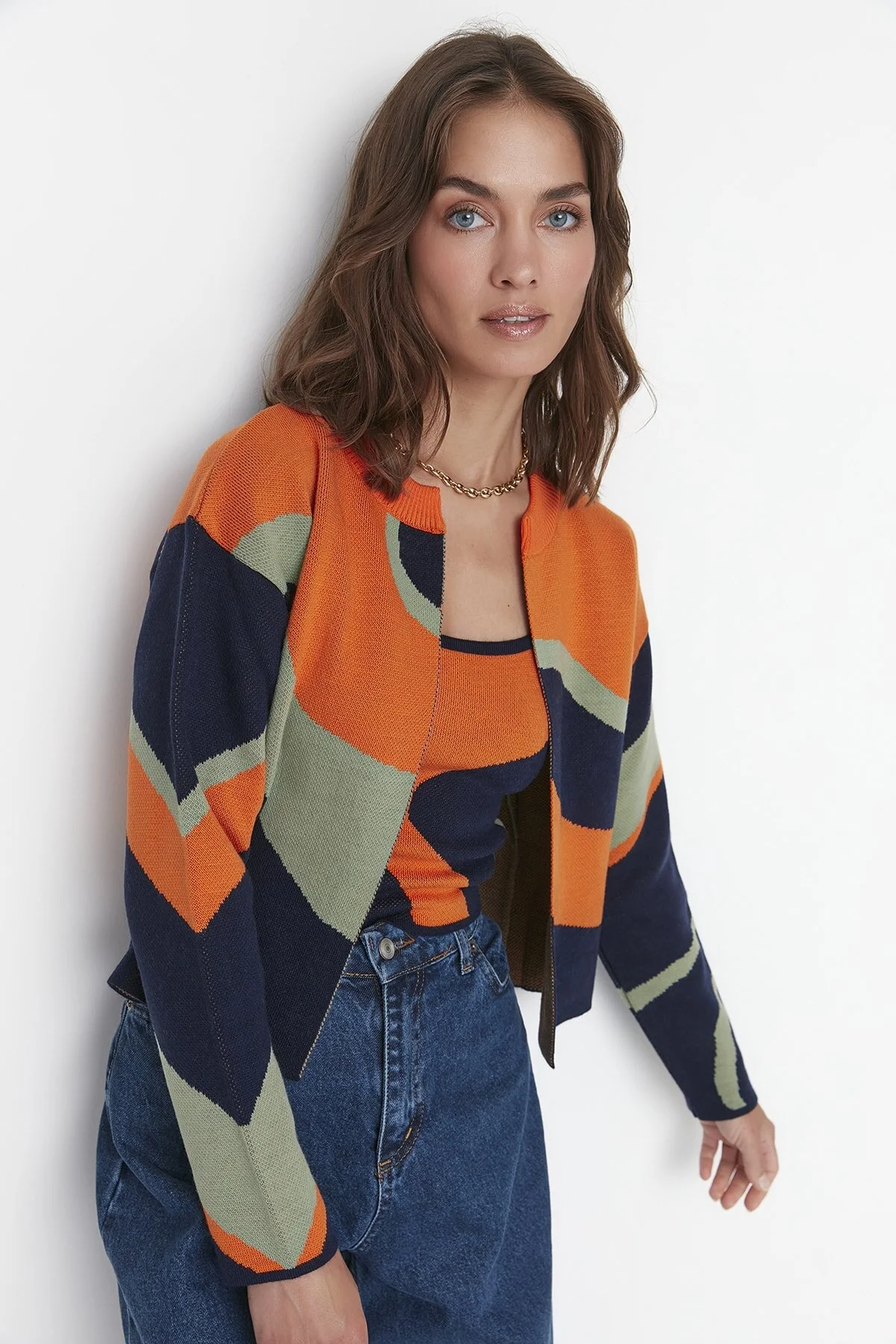 Turuncu Desenli 2'li Bluz-Hırka Triko Hırka