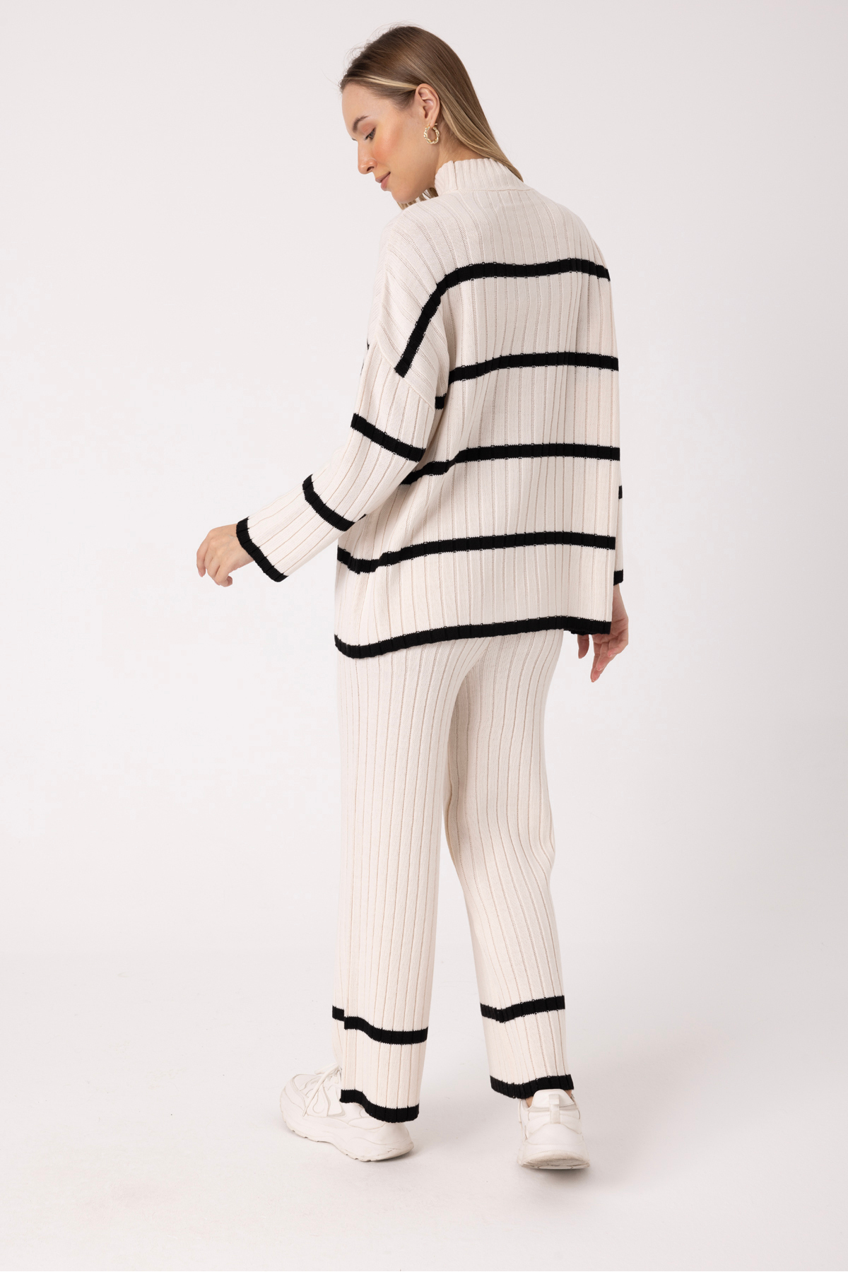 Women’s Cream & Black Ribbed Knit Sweater and Pants Set